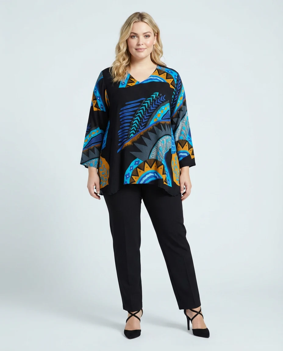 Denne smukke bluse er fremstillet af 100% crepe viskose med en naturlig crepeeffekt, der giver en flot tekstur. Blusen har en flatterende V-hals, lange ærmer og en A-formet silhuet, der kombinerer stil og komfort. Praktiske sidelommer giver ekstra funktionalitet. Et elegant og funktionelt valg.