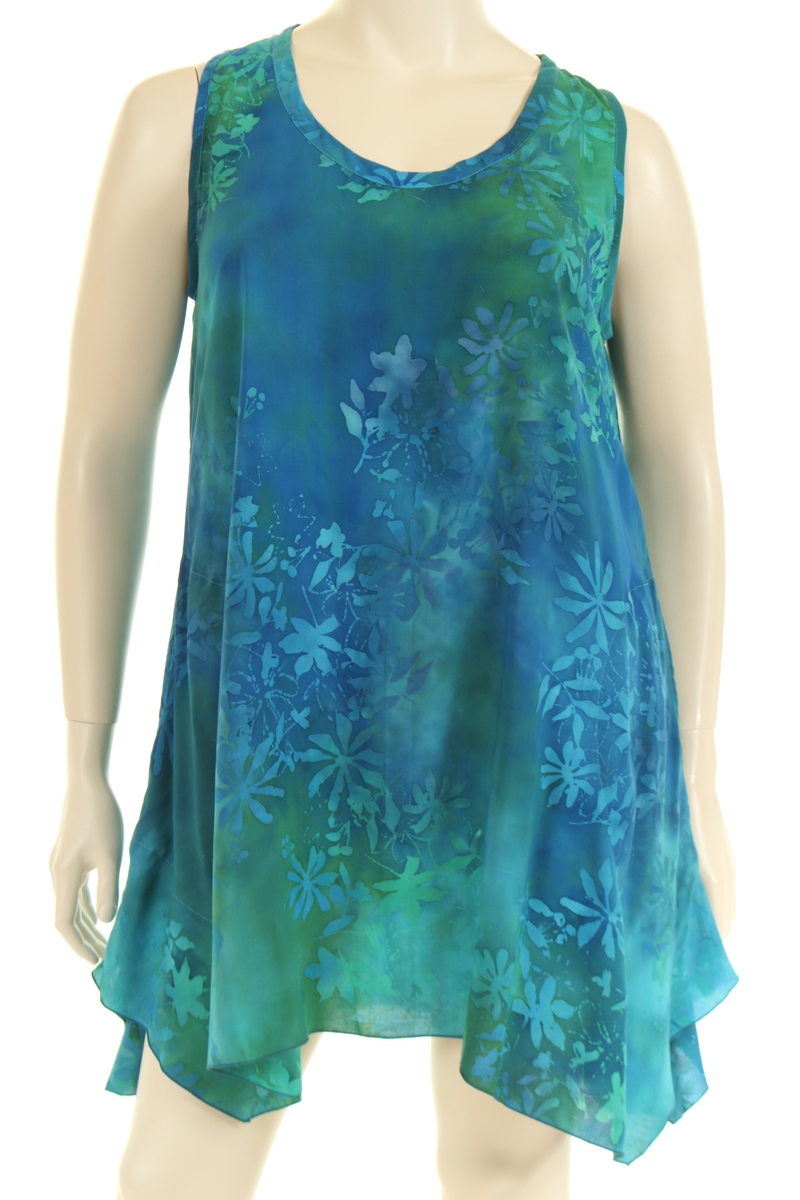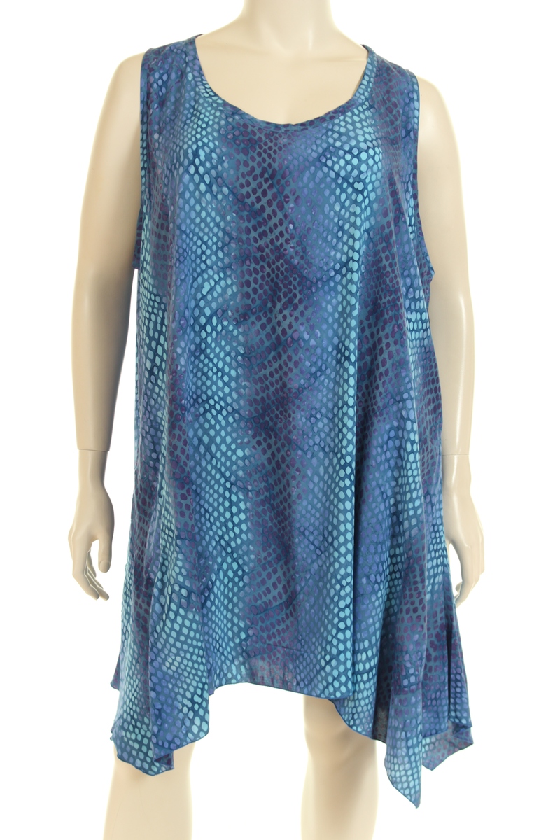 Denne stilfulde top er lavet af 100% voile viskose med et håndmalet batikdesign. Den har en flatterende U-hals og en løs, afslappet A-form. To praktiske sidelommer tilføjer funktionalitet til dette lette og behagelige stykke.