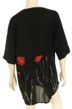 100% Crincle Viskose unifarben mit Mohnstickerei. Tunik mit V-Ausschnitt, 3/4 Ärmeln zwei Taschen
