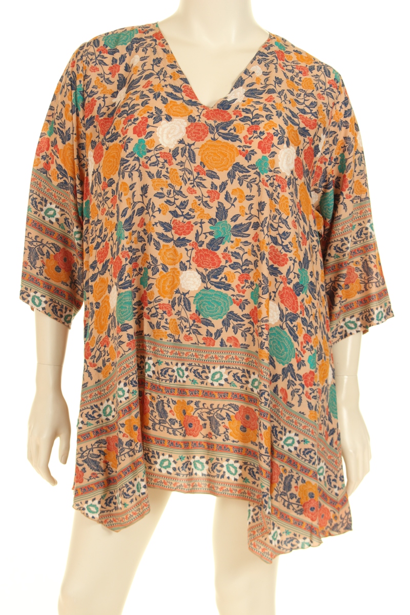 Cette blouse élégante est confectionnée en 100 % voile de viscose avec un design imprimé. Elle présente un décolleté en V flatteur et des manches 3/4, avec une coupe A décontractée. Deux poches pratiques sur les côtés ajoutent de la commodité à cette pièce stylée. Une blouse polyvalente et confortable, parfaite pour un usage quotidien.
