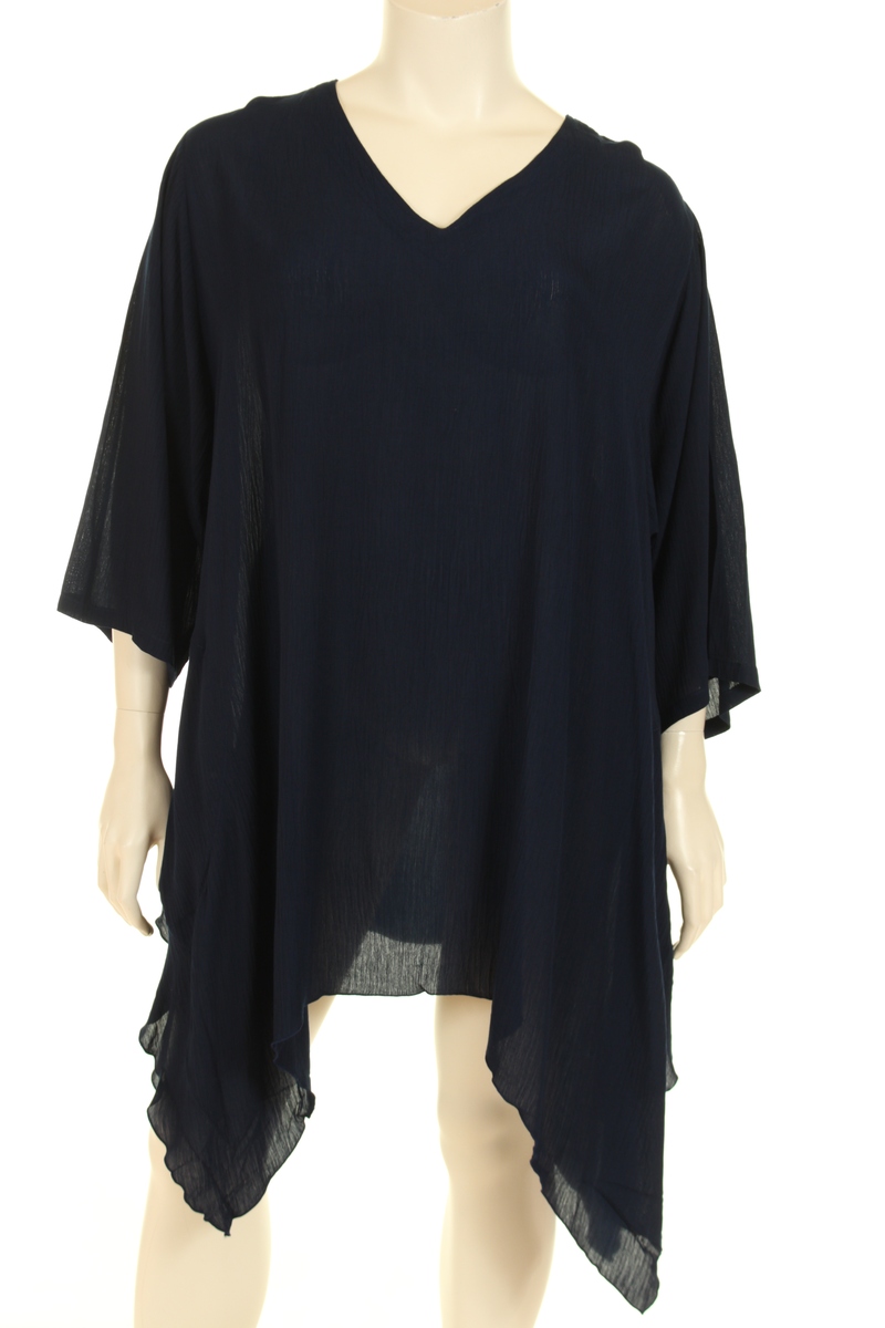 This beautiful tunic is crafted from 100% crinkle viscose. It features a flattering V-neckline, 3/4 raglan sleeves, and a relaxed A-line shape. The tunic includes two practical sideseam pockets and an assymetric W bottom cut, perfect for both comfort and style. A perfect combination of style and comfort, this tunic adds a unique, artistic touch to your wardrobe.