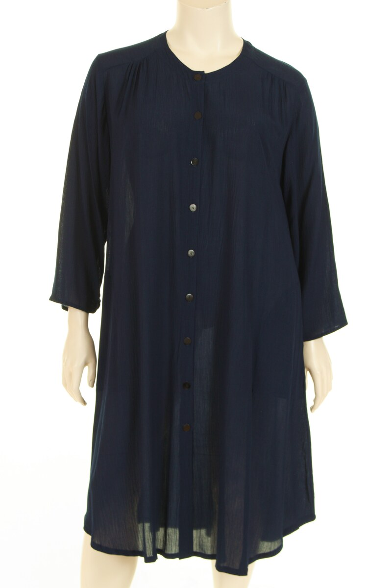 This versatile shirt jacket is made from 100% plain crinkle viscos, offering a relaxed fit and a natural texture from its crinkled fabric. It features long sleeves and a simple collarless design, making it perfect for layering or wearing as a lightweight jacket. A stylish and functional piece for any wardrobe