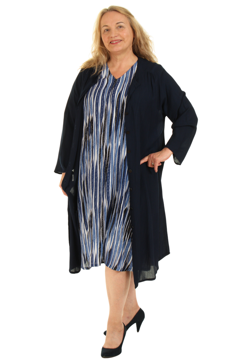 We use a lot of the crinkle viscose fabric which we call AC or KT, so all the styles starting with these initials are crinkle fabric. Many people like the fact that the crinkle fabric is very flexible. When you wash the crinkle fabric, it will shrink quite a lot and this may alarm you. The garment can then be ironed and/or steamed back to its original size. This also means that if the fit is slightly too big on you, you can wash it, disregard the ironing and when you put it on it will accommodate you and get bigger with wear. Or as I have heard one shop advise its customers, if they find the sleeves too big, then refrain from ironing the sleeves after wash. Some customers wash, hang and wear and then after about half an hour to an hour the garment fits nicely.