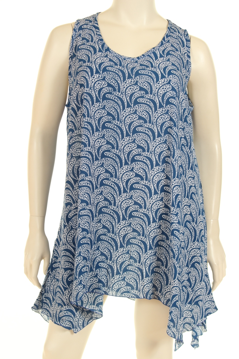This top is made of 100% crinkle viscose APR print, offering a lightweight and breathable feel with a beautiful textured appearance. The top features a sleeveless design with an A-shaped fit, providing a relaxed and flattering silhouette. It has two practical side seam pockets and an asymmetric bottom hem, adding a modern and stylish edge. This versatile top is perfect for both casual and more formal occasions. A comfortable and stylish top, perfect for a variety of occasions, offering both fashion and functionality.